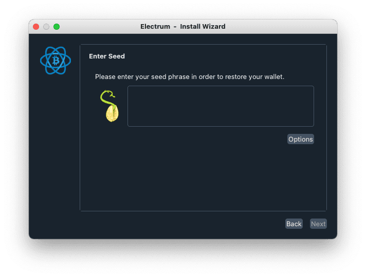 If you wrote your Electrum seed on paper or have it in digital form, you can use it to re-access your Bitcoin in your Electrum wallet. Use the following steps to type your seed phrase and restore your crypto.